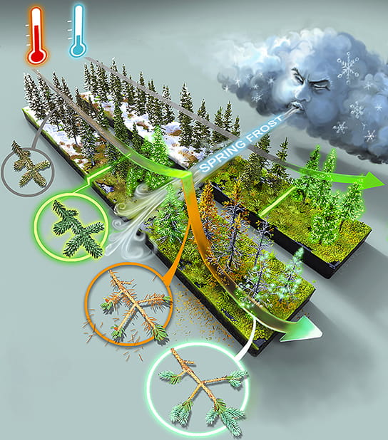 Experimental warming treatments show how peatland forests may respond to future environmental change.