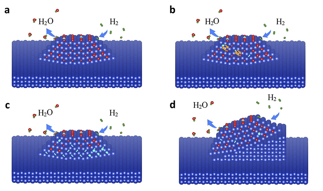 Real-time imaging shows how hydrogen causes oxygen to leave a buried surface, transforming an oxide into a metal.