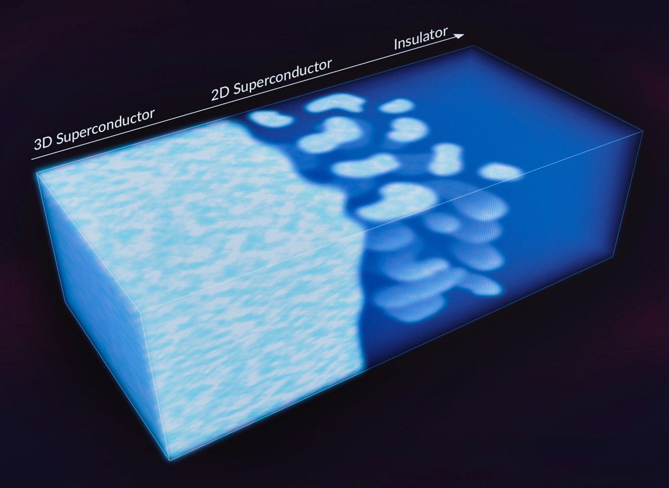 Three-dimensional superconducting electrons choose to cross over to a flatter alternate dimension.