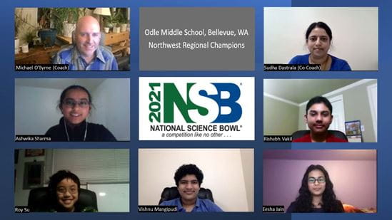 Coach Michael O’Byrne is mostly a physics teacher at Interlake High School. He feels honored to have helped the Odle team form and compete in NSB. Michael is continually amazed by the breadth and depth of knowledge that the Odle team has developed. Michael does not have any spare time and likes it that way. He is currently coaching three soccer teams and squeezes in crosswords, chess, golf and doing the laundry. Coach O’Byrne is grateful to have co-coach Sudha on the team!