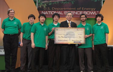 Secretary of Energy Steven Chu and the George Walton High School Science Bowl team at the 2010 National Science Bowl competition in Washington, DC on May 3, 2010.