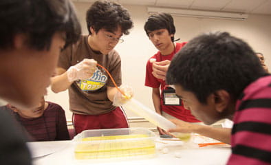 The Mira Loma High School team from Sacramento, CA works on the oil spill challenge at the National Science Bowl in Washington, DC.