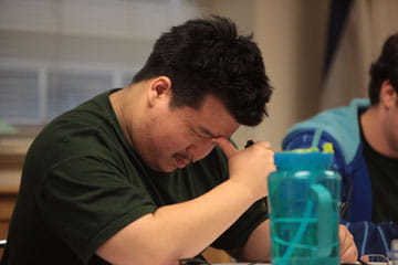 Daniel Li, a member of the Thomas Jefferson High School team, works on the answer to a question in the academic competition of the DOE National Science Bowl in Washington, DC on May 2, 2010.