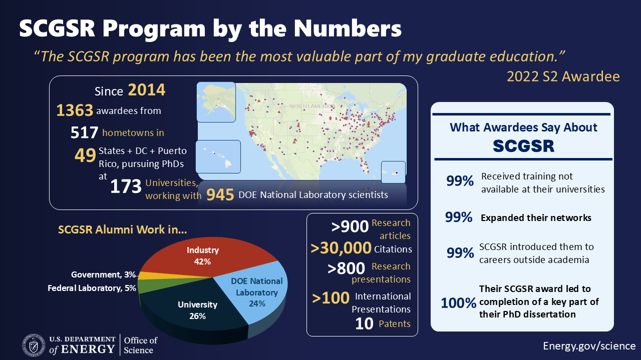 To better understand the impact and experience of SCGSR, read our highlighted SCGSR research projects and learn about the program's robust support and history.